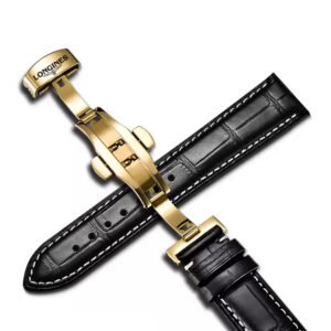 Dây Đồng Hồ Da Cá Sấu Longines Màu Đen Chỉ Trắng – Chất Liệu Da Cá Sấu Cao Cấp Tương Thích Tất Cả Các Phiên Bản Đồng Hồ Longines