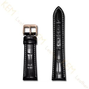 Dây Đồng Hồ Da Cá Sấu Longines Màu Đen Chỉ Trắng – Chất Liệu Da Cá Sấu Cao Cấp Tương Thích Tất Cả Các Phiên Bản Đồng Hồ Longines