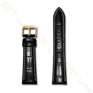 Dây Đồng Hồ Da Cá Sấu Longines Màu Đen Chỉ Trắng